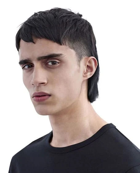 Here the sides are shaved, and the hair on top is long to medium length. This mullet mens haircut will give you a minimal but sleek look.